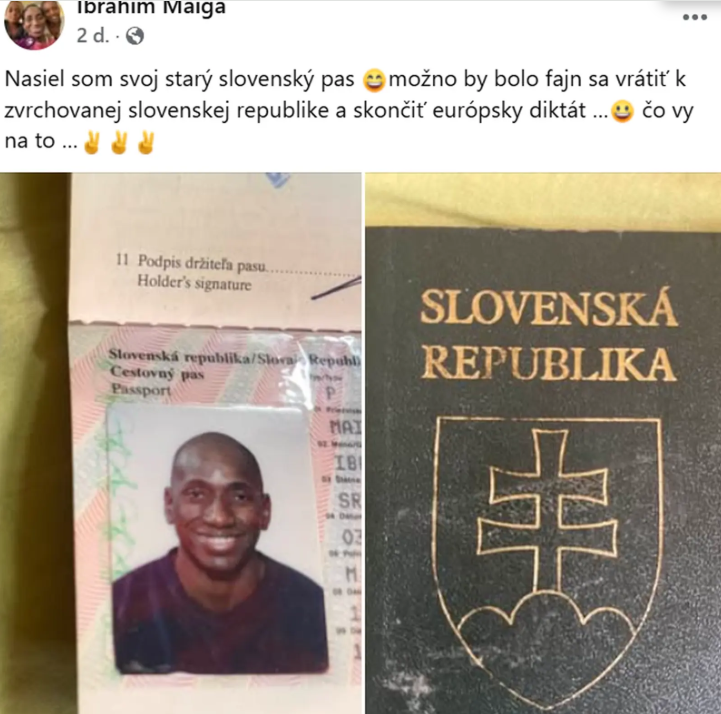 Ibi Maiga rozvíril vody: Fotka starého pasu a výzva k slovenskej zvrchovanosti