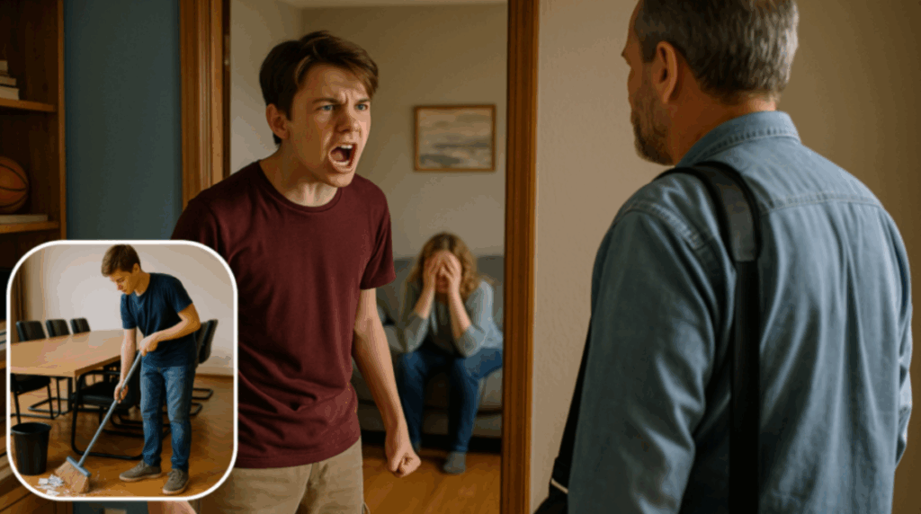 Chlapec zaťal päste, pretočil oči, ale odišiel do kuchyne. Zvuk tečúcej vody a cinkanie tanierov bolo počuť až do izby.