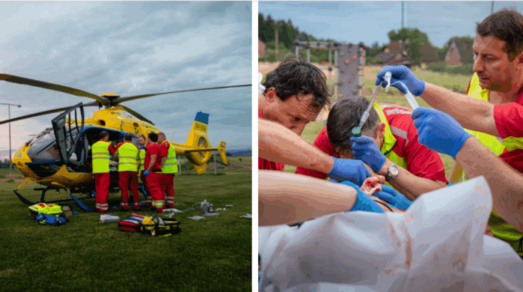 Operačné stredisko medzitým komunikuje s Fakultnou nemocnicou Hradec Králové, kde sa pripravuje tím na urgentné prijatie. Vrtuľník pristáva – a zraneného okamžite prevážajú priamo na operačnú sálu.