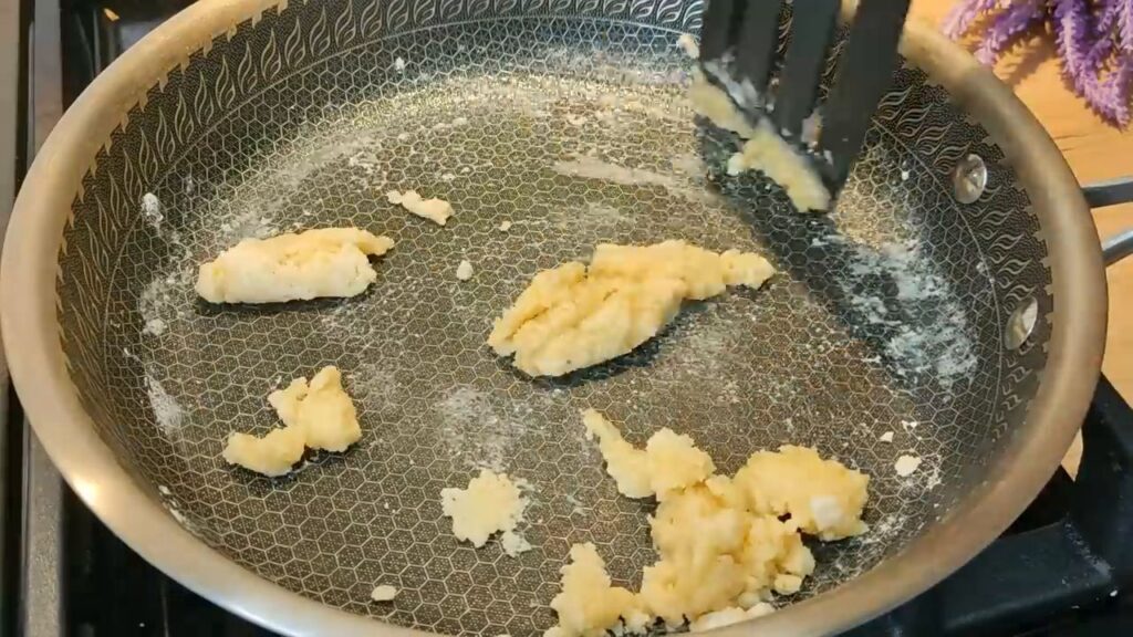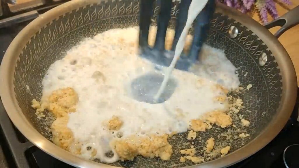 - Pripravíme si bešamel: v panvici rozpustíme maslo, pridáme múku a za stáleho miešania jemne opražíme.