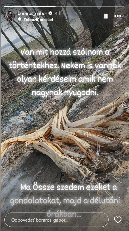 Do vzniknutej situácie sa rozhodol prehovoriť aj Gábor Boráros, bývalý partner zosnulej. Na svojom Instagrame zverejnil znepokojujúci odkaz v maďarčine, v ktorom napísal: