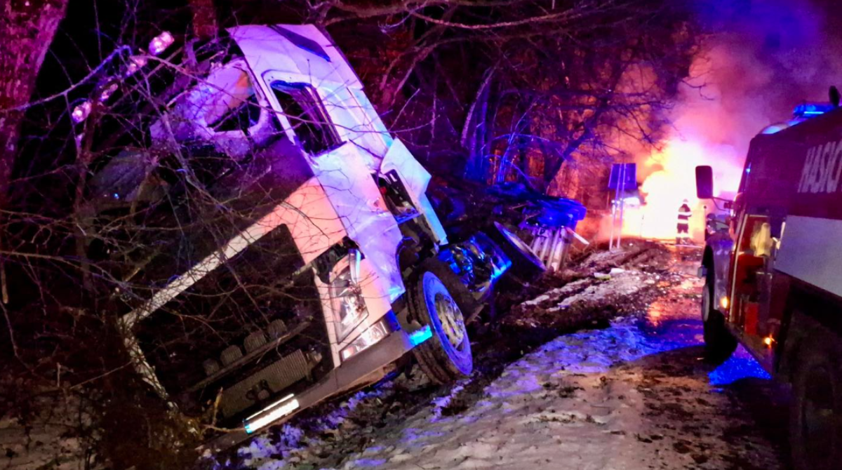 K dopravnej nehode došlo 17. februára 2026 o 02:46 hodine. Liptovská Osada v okrese Ružomberok sa stala miestom, kde sa stretli dve veľké vozidlá – medzinárodný autobus smerujúci z Krakova do Rumunska a nákladný automobil naložený drevom.